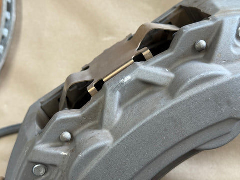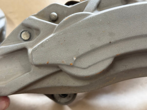 Calipers and rotors are in good condition. Pads and rotors have a lot of life left. Finish on calipers is in okay shape. However they do have some scratches and scuffs as shown in the pictures. No damage to either caliper. 14 inch stock brakes. Check with dealer for fitment for other years. Pictures show exact condition.