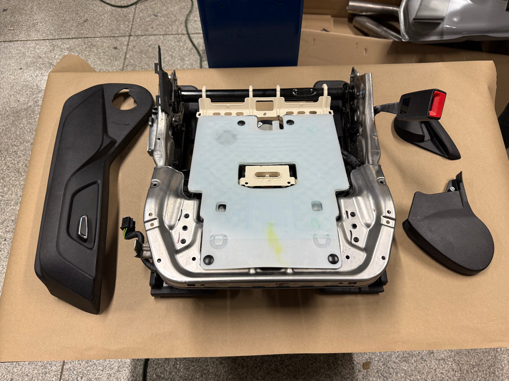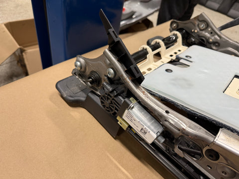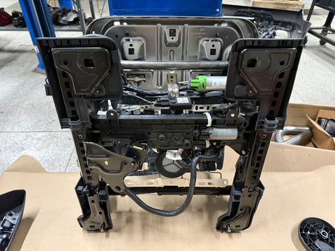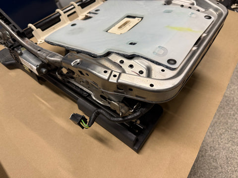 This is the RH/Passenger side lower seat frame with power track and motor. Perfect working condition with no damage. This comes with the trim pieces shown and the buttons as well. Seat track is heated and cooled as shown. There are some minor scuffs and scratches on the trim pieces due to everyday driving.