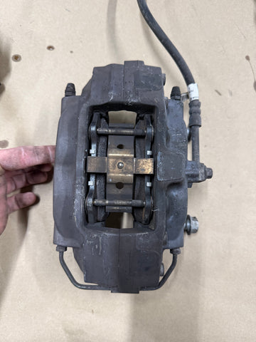 Rear Brembo calipers. Everything is in good condition. Finish is in poor shape. Light scratches as shown. Brembo lettering is almost completly gone. Pads look to have some life left. They DO NOT leak. Come with the brake lines and pads.