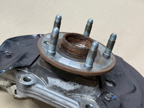 Pulled in good condition as you can see from pictures. Front RH/passenger side knuckle, spindle, and hub. Dust shield has a small ding as shown on the bottom. Complete take off. You will need to swap over abs sensor.