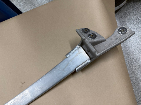 Finish looks okay. You can see some light oxidization starting. There are some scratches and nicks on the strut brace but nothing too crazy. Flaws are all clearly mentioned and pictured. Do your own research on fitment between models. Pictures show exact condition.