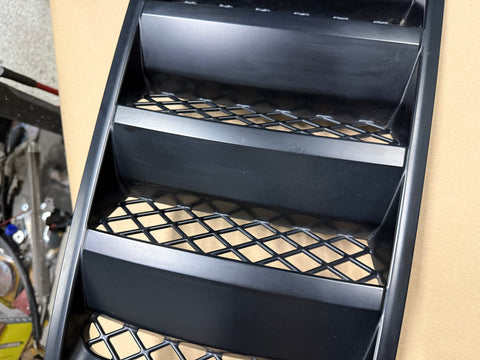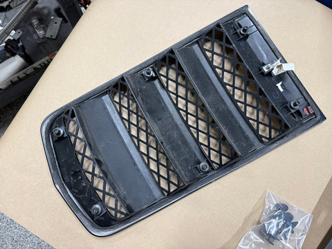 Camaro Hood vent. GM OEM. Black in color. There are a few light scratches that are pictured. Paint on the vent is in pretty decent shape for the age. No damage to the piece. Lower tray is broken on the one corner as shown and is missing some of the plastic. Will still clip into place no issues.