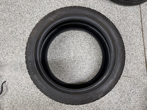 No damage to tire. Tire is somewhat older but still in great shape. Didn't see any dry rot or cracking. Used tire.