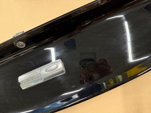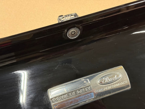 OEM rear deck lid panel. Id say normal condition for what we see. It does have some scratches/scuffs as you can see in the pics. Powered by Ford Performance emblem. Emblem is faded and the color has mostly rubbed off as shown. One broken tab. Does include the back-up camera.