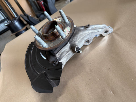 Pulled in good condition as you can see from pictures. Front RH/passenger side knuckle. Complete take off. Dust shield looks good. You will need to swap over your ABS sensor. Ready to install.