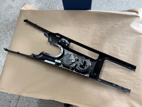 There's a couple blemishes in the leather that can be seen in the pictures. One by the e-brake handle and a couple more near the shift boot. Cup holders do have lighting in them. Blue scratch mark near the shift boot. Gouges in the leather as shown. NO OTHER DAMAGE. NO broken tabs.