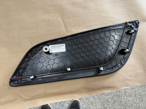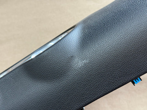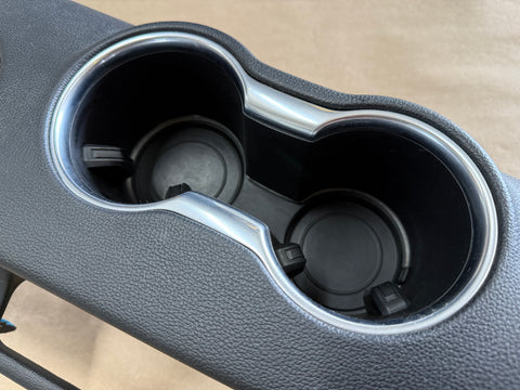 My color in the cup holders. Will fit 2015-2023 Mustangs, not GT500. This is the Center console top cover that has the cup holders. Leather wrapped oem piece. Included are the knee pads. They are in nice shape other than the marks on the driver side knee pad. There are a few marks/cuts in the leather that are pictured. The one around the shifter I do believe you will see with shifter trim installed. There are a couple spots where it looks like something got hot near the leather as it's flat and the pattern is gone. NOT a perfect piece. There are a couple of small nicks around the cup holder ring as pictured. All mounting tabs are intact.