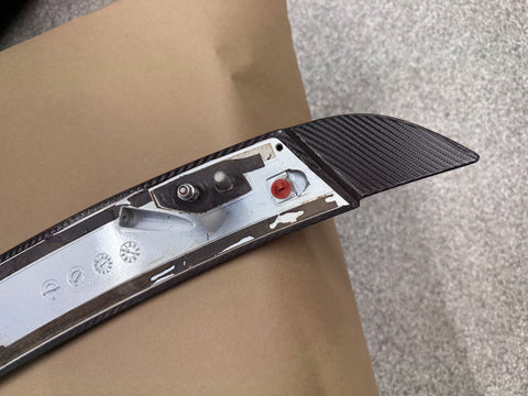 Take off Mustang 5.0. This is a OEM spoiler not cheap aftermarket. Spoiler has been wrapped a fake carbon fiber look. There are a some scratches and nicks in the wrap. Will need repainted to be perfect as i dont know how the paint looks underneath. They are held on with 4 mounting bolts and 3M tape. Comes exactly as pictured.