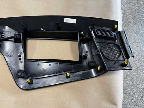 OEM part. This piece is clipped into the top of the dash pad. Defrost vent, heads up display and speaker grille trim panel. There are some light scuffs here and there. Nothing major. Nice piece from a low mileage truck.