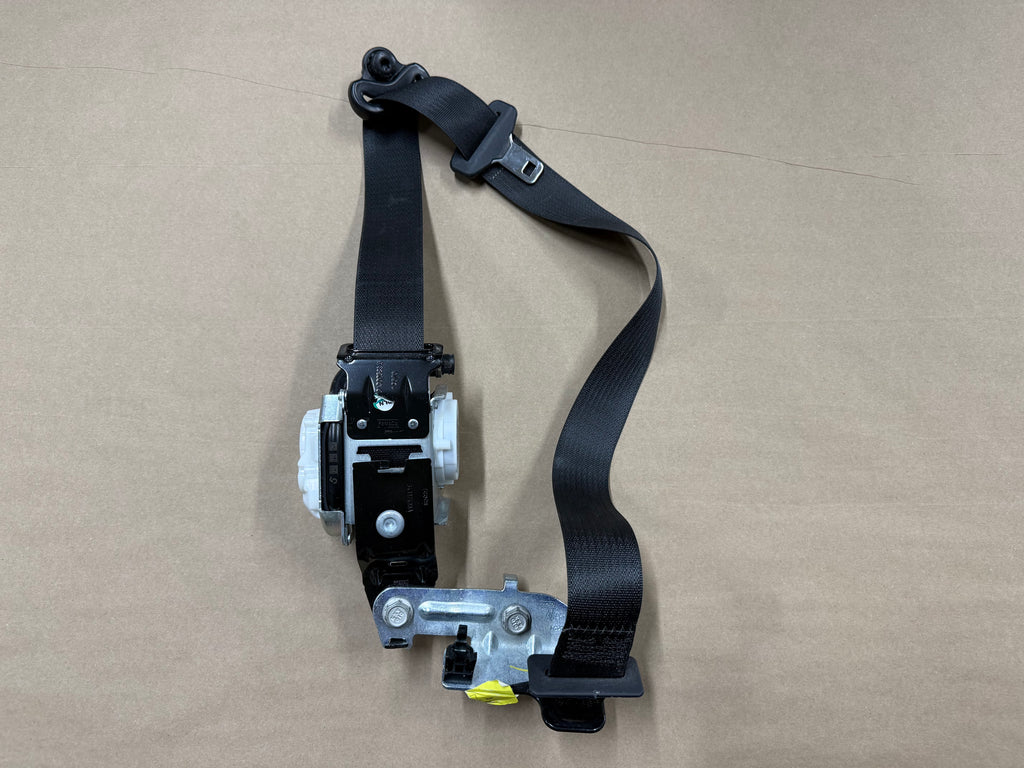 LH/Driver front seat belt. Black in color. Part number is pictured. No damage.