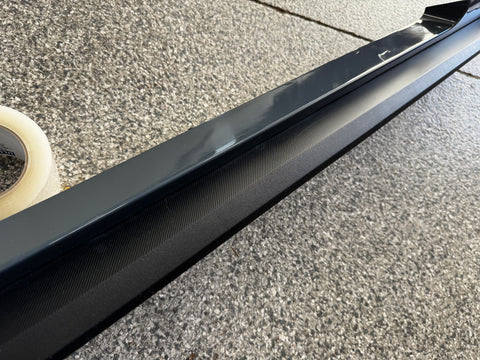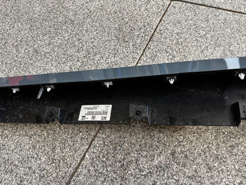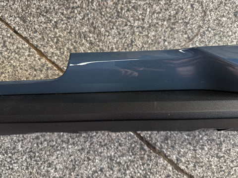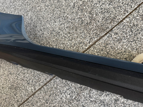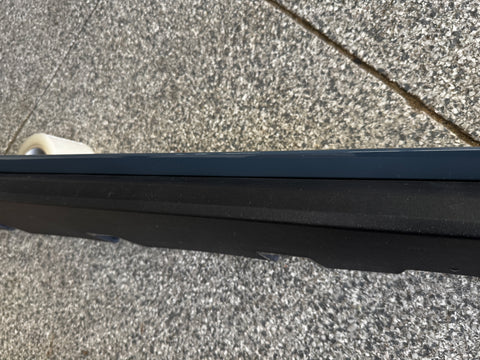 LH/driver side skirt molding. Great condition. Paint is in really nice shape. There are some surface scratches and rock chips on skirt from everyday driving. Lower trim piece is in nice shape as well. Some scuffs/scratches here and there. Structurally appears to be in nice condition. Missing clips and some clips may be broken, almost impossible to get out without breaking them. Zoom in on pictures to get a good look. Pictures are exact item.