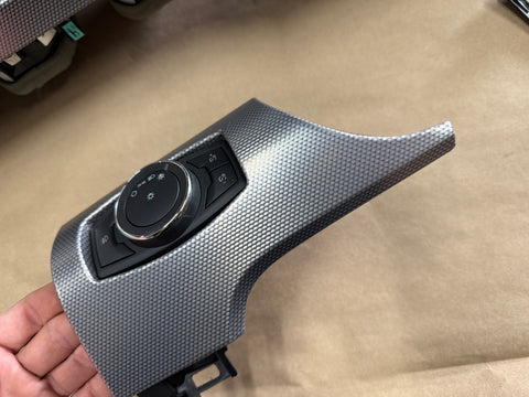Will work in any year Mustang 2015-2023 non performance pack car. 4-piece set. Center dash piece and light switch. Headlight trim piece is in nice shape. Triangle pieces look good with minimal wear.