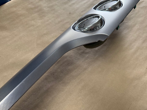 Long dash trim piece is in decent shape. There are some marks as shown on the passenger side end and some staining above the vents. NO broken tabs. There are a few plastic clips missing as pictured.
