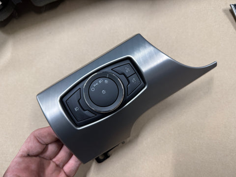 This is the 50th anniversary trim only found in 2015 mustang's. Will work in any year Mustang 2015-2023 non performance pack car. 4-piece set. Center dash piece and light switch. Headlight trim piece is in nice shape minus the line on top from the dash pad, looks dented. Triangle pieces both have some dings on the bottom as well as some light scratching.