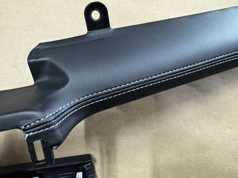 These the lower the lower dash trim pieces, wrapped in leather. Very nice pieces. The longer piece does have a nick in the leather that is pictured. Stitching looks like a light grey in color. All mounting tabs look to be in place.