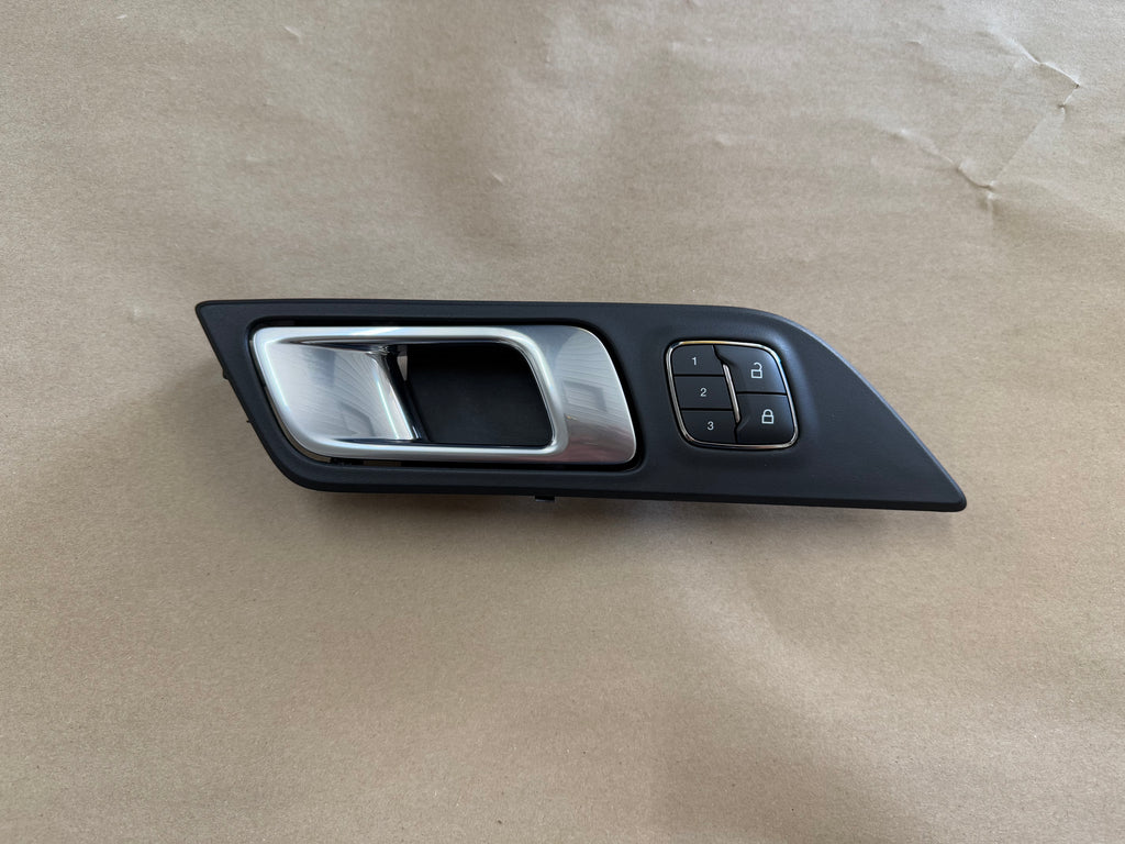OEM memory door handle take out. Included are the memory buttons, handle and trim. Take off piece is in nice condition. No damage. Handle does show some scratches.