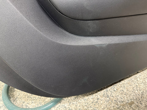 Door panels are in okay condition. Door panels are hard plastic, not soft like the 18 plus cars. Car had the off white/grey stitching but they used a fabric marker to make the stitching red as shown. The passenger panel looks pretty good with minimal wear, although 1 of the tabs on the backside is broken off as shown. There are 2 indents as well one by the tweeter speaker and one on the rear side. Light scuffing and blueing on the lower portion of driver panel, more than likely from getting in and out and the bag going off. There is a spot on the leather armrest where the leather is worn through, right next to the grab handle. There is also an indent near the tweeter speaker as shown. Normal wear and tear on these from everyday use as well.