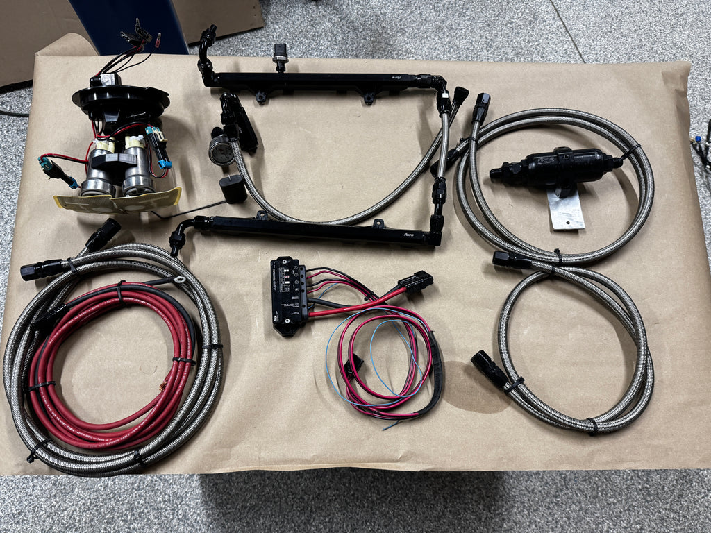 Comes with stagged controller with wiring. I suggest a Honeywell pressure switch and I did not see a fuse on the power wire. Will want to have that as well. May have gotten missed in the car. Both fuel pumps are TI Auto F90000274. Was a running kit when removed with no issues. Pretty nice kit. Anything missing or needed you will need to source yourself.