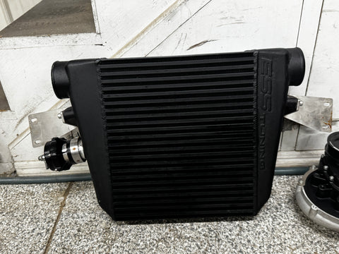 Satin ESS supercharger head unit. 110 mm supercharger pulley. Comes with a glow shift boost/vac gauge. Supercharger spins freely. Doesnt appear to have any damage on aly of the parts. There are some scuffs/nicks here and there from being used. Filter is a little beat up. Pretty nice used kit. You may need to add oil upon receiving. May have to drain before shipment.