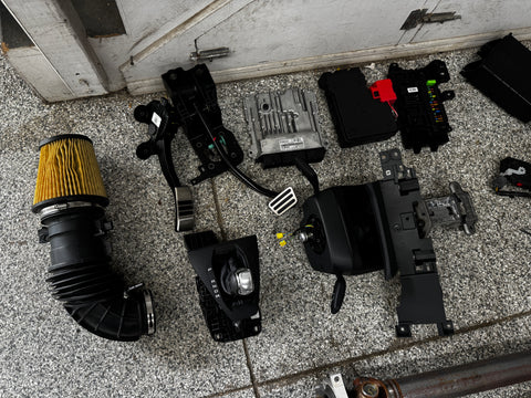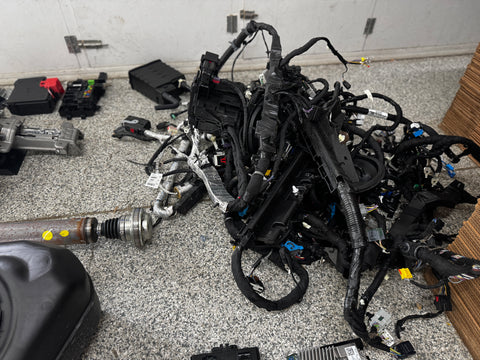 This is a 5.0 engine and 10R80 Automatic 10 speed transmission only with wiring that is attached to them with engine accessories. No damage to the engine or transmission. Will not come with either air boxes. No key fob. Comes with the larger screen. Screen has a nick on the edge and a scuff pictured. No radiator, fan, brake booster or coolant tank.