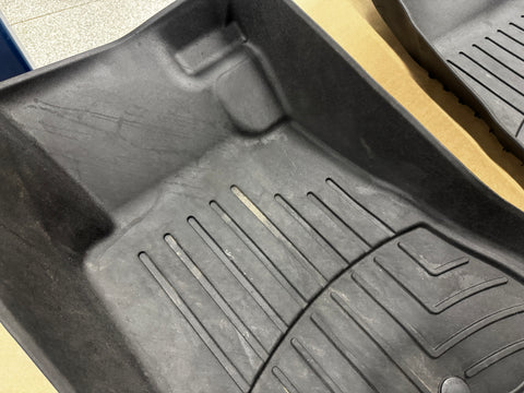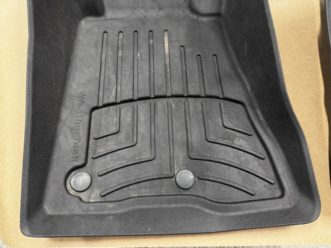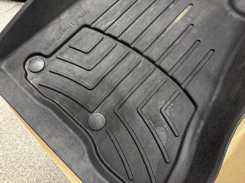Used condition. WeatherTech in brand. This is for the front floor mats. They are used and do have little wear. Mostly the driver side front mat. Weathertech brand name and part number shown on bottom.