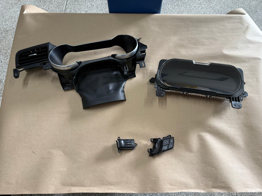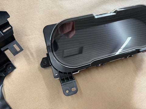 Pulled in perfect working condition. Does come with the cluster surround, digital cluster, and the 2 rh steering wheel buttons. Cluster surround trim is silver in color. The plastic lens on the cluster is in good shape. Light surface scratches from everyday use. Looks like a couple of water mark stains. Take out from a automatic car.