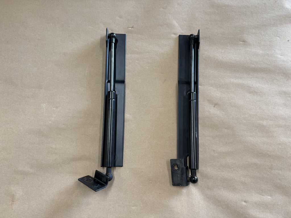 Used hood shocks strut kit. Unknown brand, no markings to tell. Take off is in good shape. Complete take offs. Fits 15-23 Mustang GT, Eco Boost and V6.