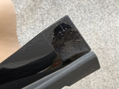 RH/passenger side skirt molding. There are some rock chips around the wheel openings which is normal. Scratches on the rear side as shown in pictures. Will need repainted if you want perfect. Some road wear on the lower trim piece from everyday driving. Broken/cracked tab on the front side as shown. Missing a few white clips, almost impossible to get out without breaking them. Zoom in on pictures to get a good look. Pictures are exact item.
