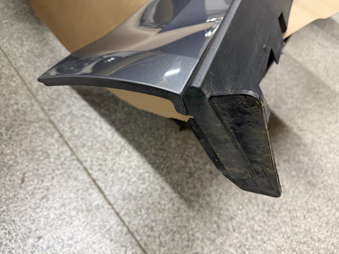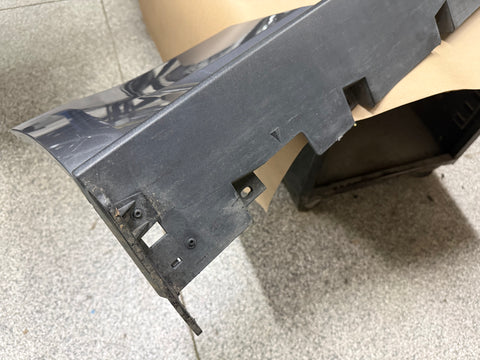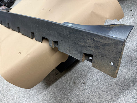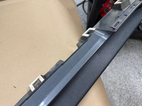 RH/passenger side skirt molding. There are some rock chips around the wheel openings which is normal. Scratches on the rear side as shown in pictures. Will need repainted if you want perfect. Some road wear on the lower trim piece from everyday driving. Water spot marks on the painted portion of skirt. Missing a few white clips, almost impossible to get out without breaking them. Zoom in on pictures to get a good look. Pictures are exact item. NO BROKEN TABS.
