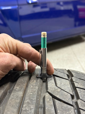 11/32nd tread left. Tire is free with purchase regardless condition.