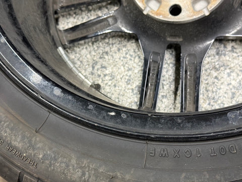 The wheel is in good condition. Scratches and nicks on the spokes which is normal. NO curb rash on the front lip. There is some rash on the backsde lip in a couple spots. There are surface scratches and one larger nick on the black finish. Pictures show exact condition if something wasn't mentioned. Would make a great full size spare.