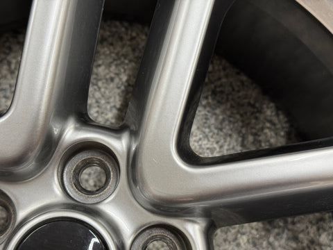 Take off wheel is in pretty nice shape. NO CURB RASH. Maybe a few small rock chips and light scratches but other then that the face of the wheel is in good shape. Backside lip of wheel looks good as well. Inside of the wheel is in good shape.