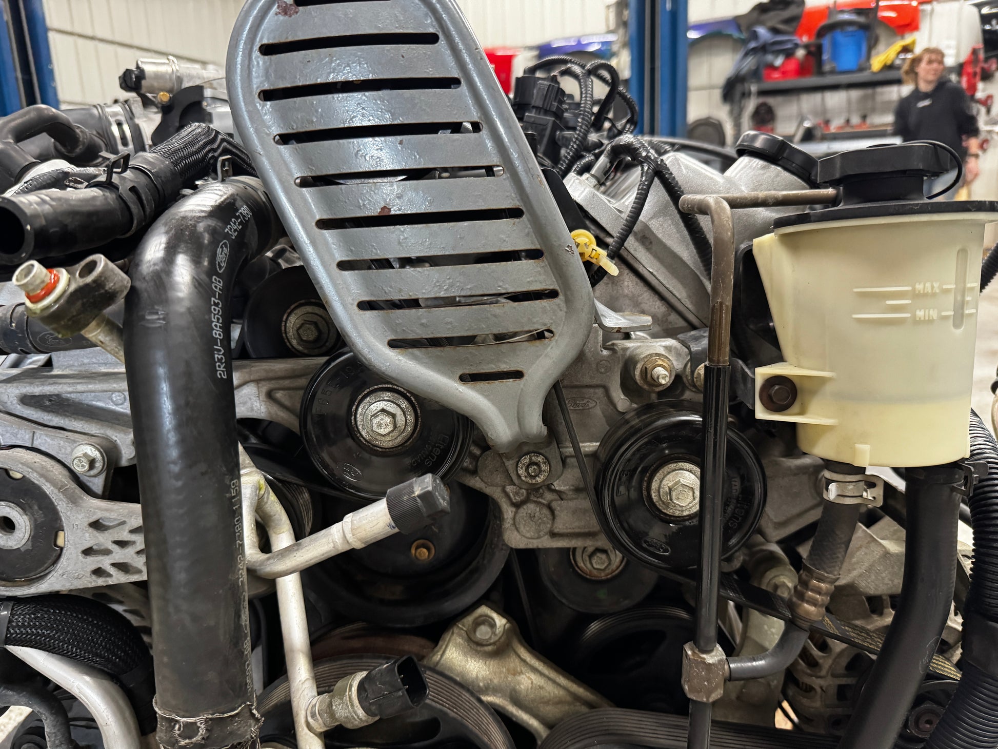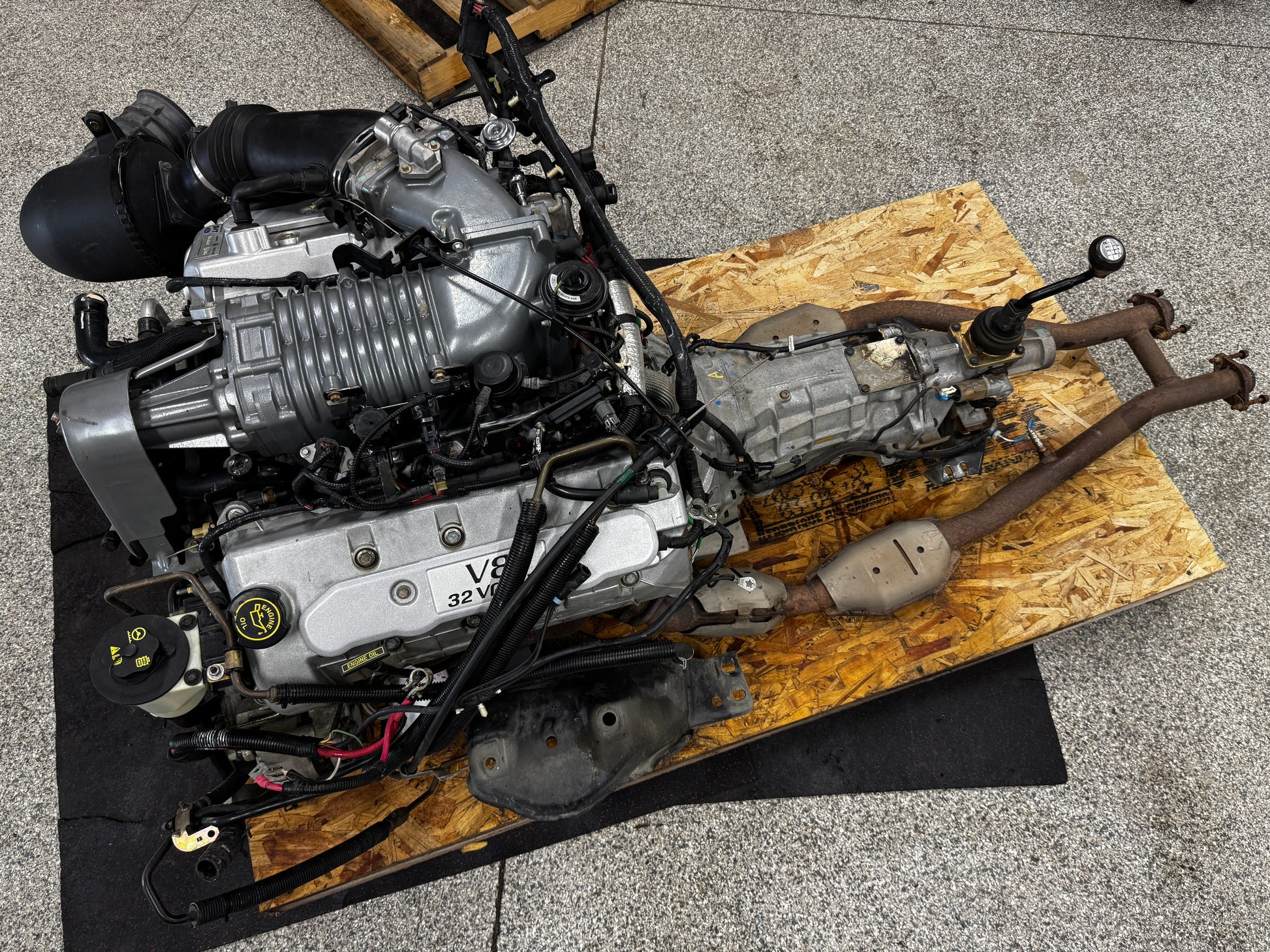 Completely bone stock take out. Still has the pulley guard on supercharger.