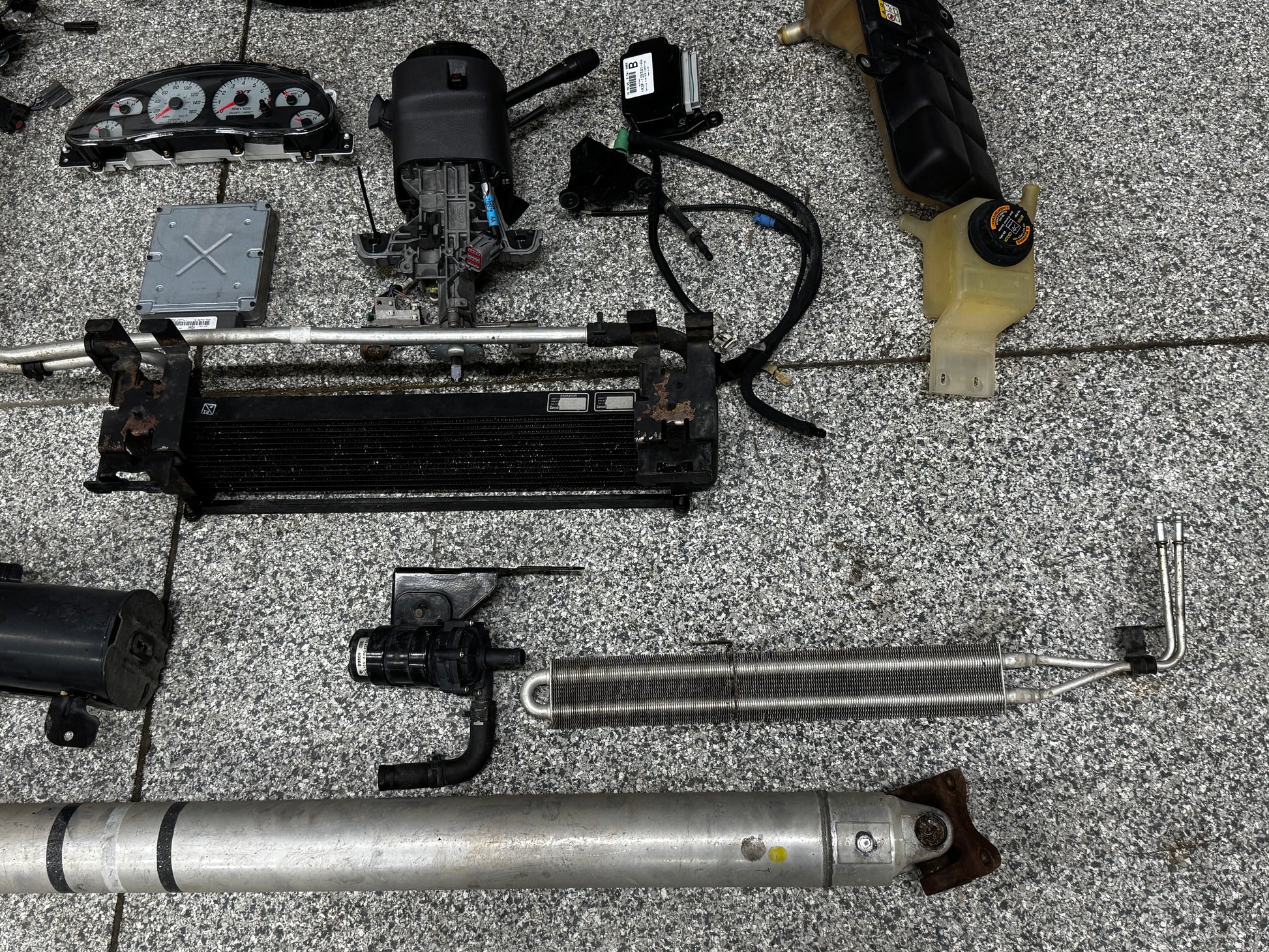 This is a complete setup as shown in pictures. In perfect condition with no problems, guaranteed. We 100% back everything we sell and guarantee it to be in perfect working condition. Our feedback speaks for itself. What is listed below will be everything you will be getting in the package. There are 2 plug ends that are broke for whatever reason. I cut off the plugs off another harness I bought and put them on the parts. You can connect them how you like. Ends are plugged into the frps and the vacuum sensor next to it. There is some light oxidation and surface rust on some parts. For a 23 year old drivetrain I would say its in pretty nice condition.