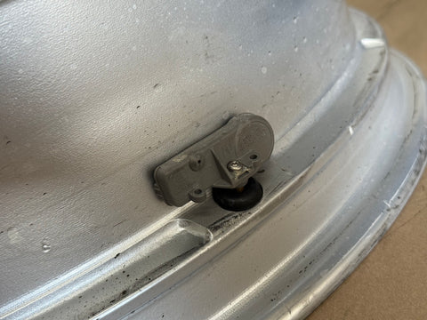The rim is in good condition. There are some scratches and nicks in the finish. You can also see some light nicks on the edge of face, front and back. Curb rash also shown on the backside lip of wheel. Would make a nice full size spare or you could have fixed and be perfect again. All flaws are pictured if not mentioned to the best of our ability. TPMS sensor is still on the rim and is included.