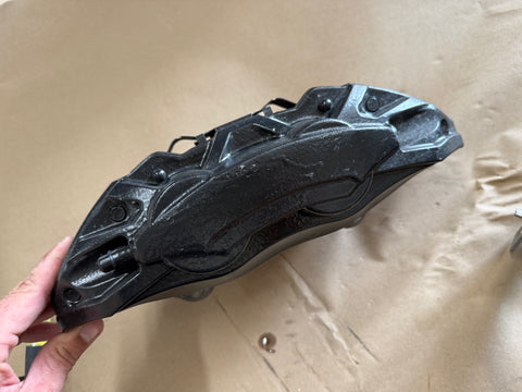 Calipers are in good shape. Calipers have been painted black. Finish is in okay shape. There are a few marks on the face of calipers. Pads have plenty of life left. 14 inch stock brakes. Normal wear and tear. Check with dealer for fitment for other years. Pictures show exact condition.