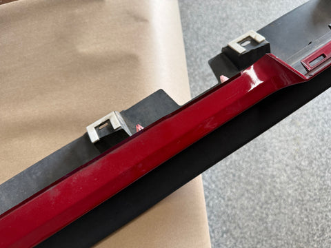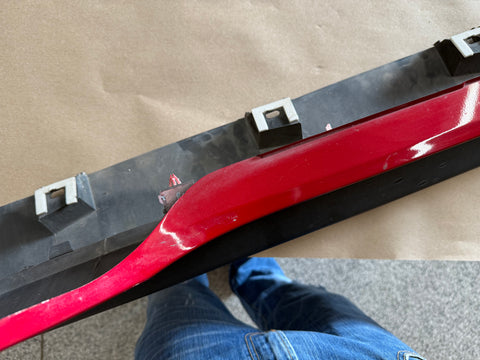 RH/passenger side skirt molding. There are some rock chips around the wheel openings which is normal. Large amounts of what looks like tar and road grime on the front side all the way to the middle, see the pictures. Scratches on the rear side as shown in pictures. Will need repainted if you want perfect. Some road wear on the lower trim piece from everyday driving. Missing a few white clips, almost impossible to get out without breaking them. Zoom in on pictures to get a good look. Pictures are exact item.