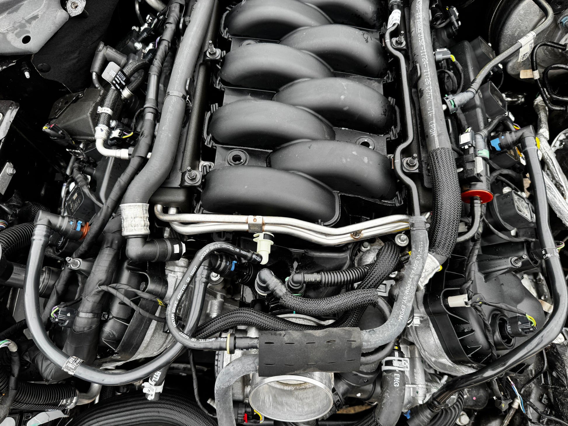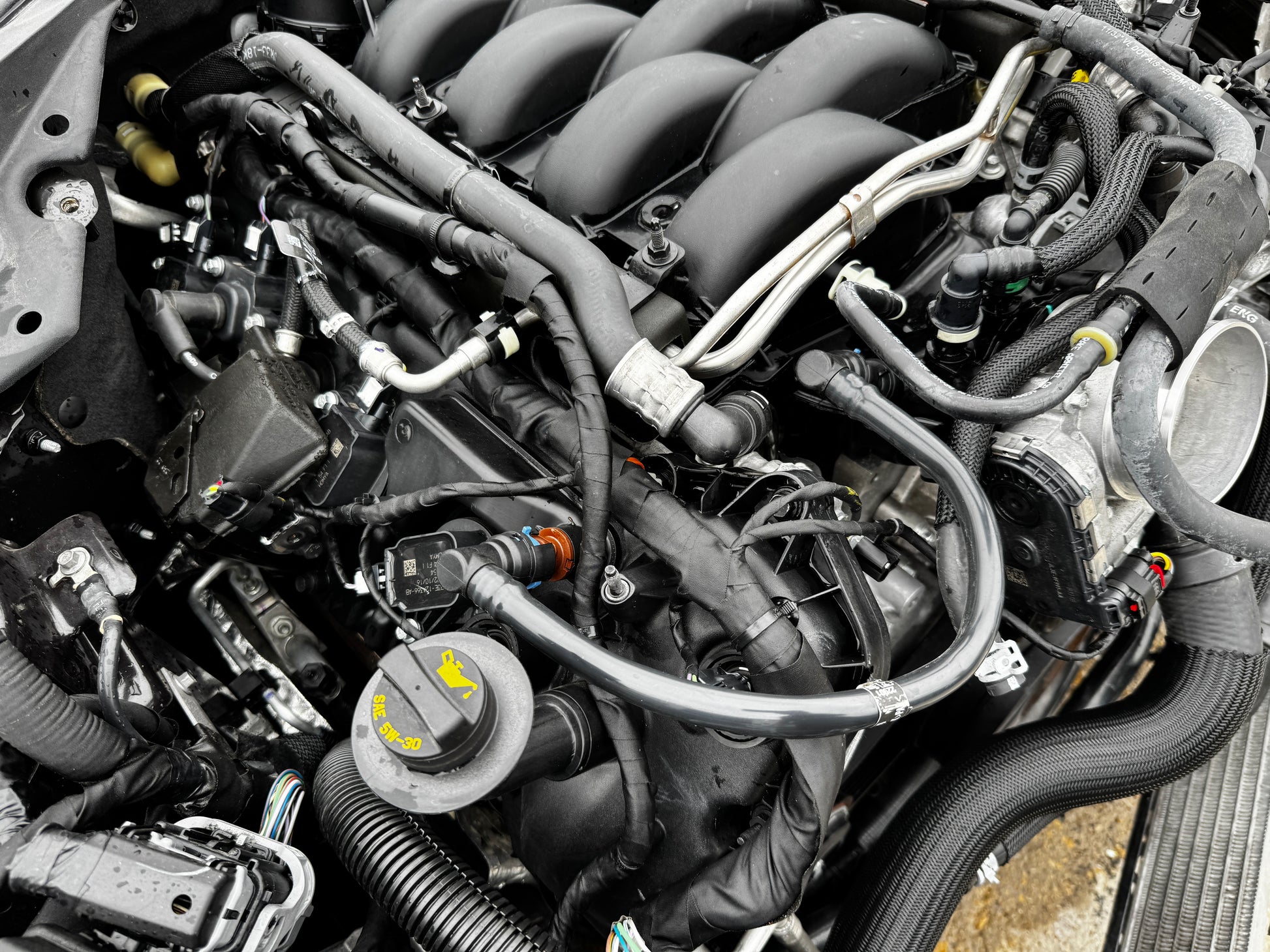 5.0 DOHC Engine. Direct Injection Engine. Very desirable motor and transmission combo. 460 HP from the factory. Generation 3 5.0 coyote. This is a complete setup as shown in pictures. In perfect condition with no problems, guaranteed. We 100% back everything we sell and guarantee it to be in perfect working condition. Our feedback speaks for itself. What is listed below will be everything you will be getting in the package. Will not come with radiator, fan, transmission cooler or cold air intake. Engine bay wiring is severally damaged as well. Digital cluster is sold separately. We did fix 2 wires on one of the coils.