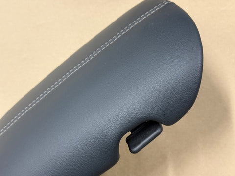 Armrest console lid. Black leather with grey stitching. Take off is in good shape. Light wear on the driver side as shown in pictures. Nothing too crazy. See the pictures.