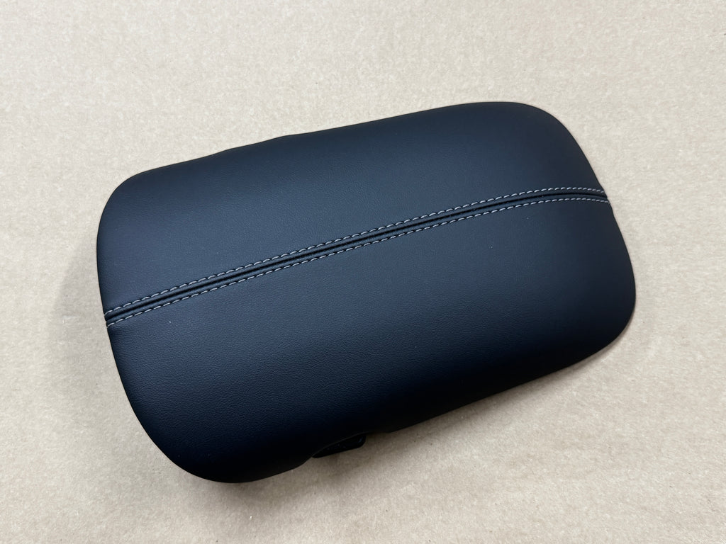 Armrest console lid. Black leather with grey stitching. Take off is in good shape. Like new condition.