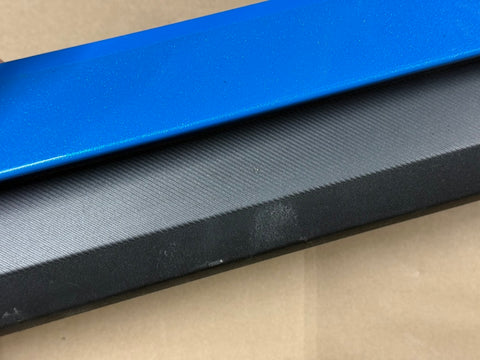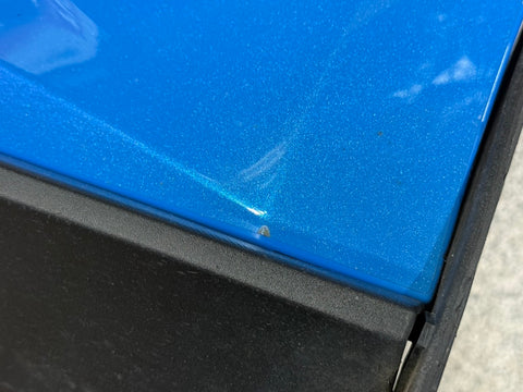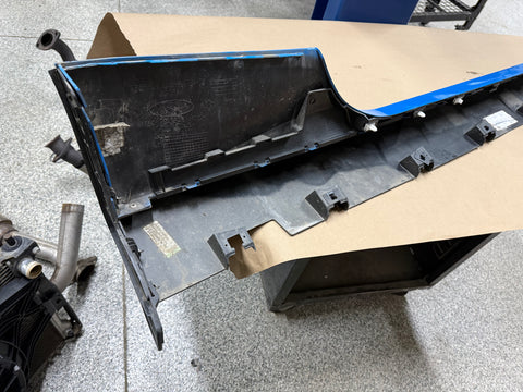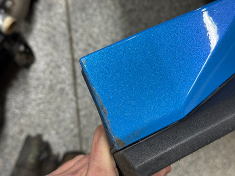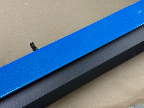 LH/driver side skirt molding. Great condition. Paint is in really nice shape. There is a metallic wrap on the piece giving it more flake in the paint. Really makes it pop. Will peel off. There are some surface scratches and rock chips on skirt from everyday driving. You can see where it is peeling up the wrap on the edges. Missing a little paint on fender side as shown in pictures. Lower trim piece is in nice shape as well. Some scuffs/scratches and rock chips here and there. Structurally appears to be in nice condition. Missing clips and some clips may be broken, almost impossible to get out without breaking them. Zoom in on pictures to get a good look. Pictures are exact item.
